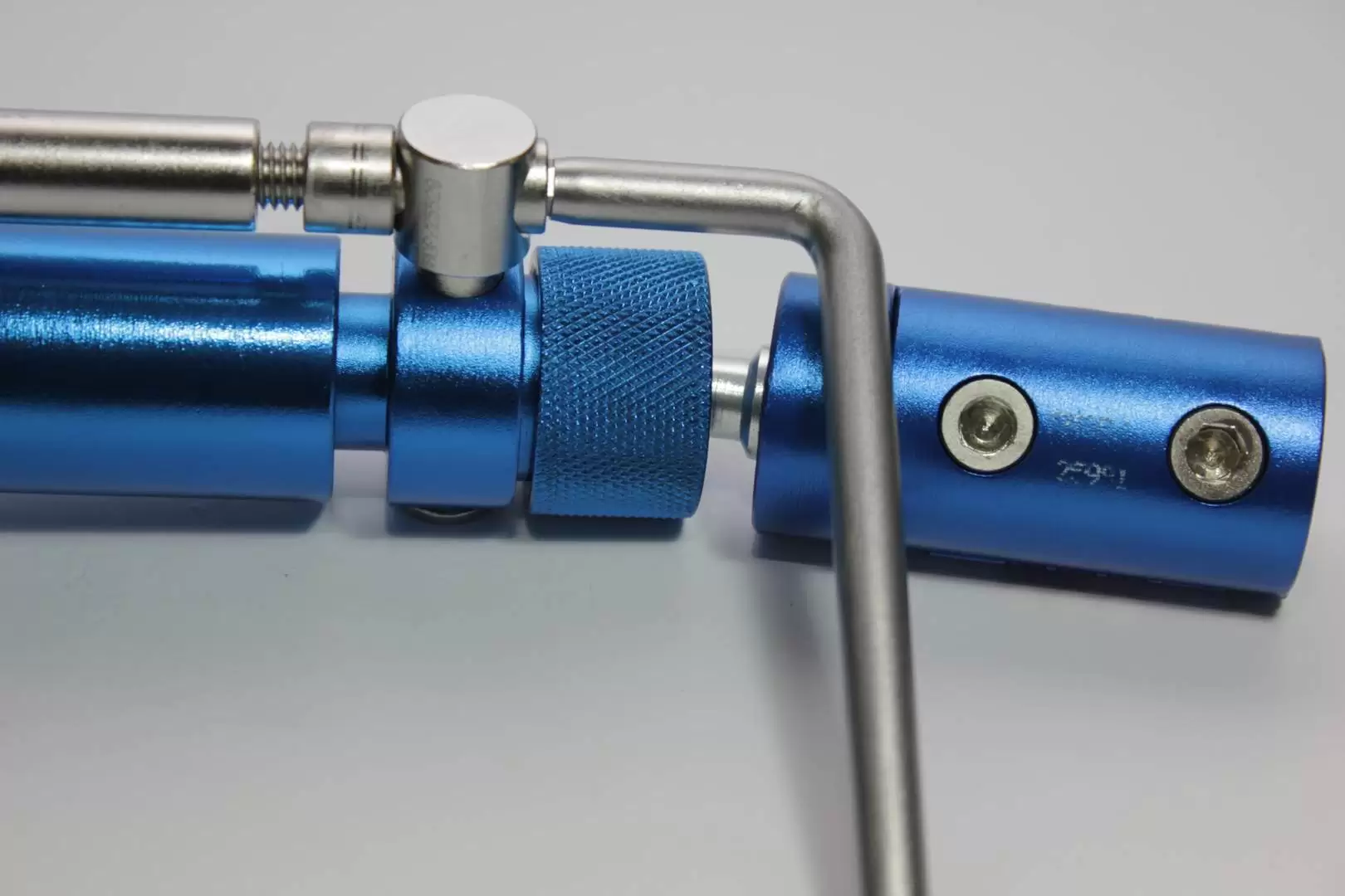 Conteúdo: Tubo Macho e Tubo Fêmea red. 25,4mm x 55mm, 02 tampas para Tubo red. 25,4mm x 14mm (recartilhadas), 02 Suportes para pinos red. 25,4mm x 46mm com alojamento para 03 pinos cada, 02 parafuso excêntricos para trava 2 01 conjunto para alongamento com curso de 59mm.